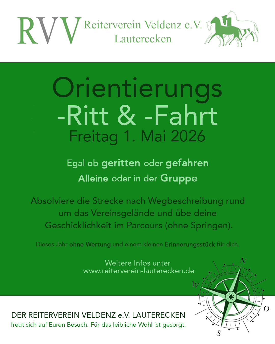Auch in diesem Jahr laden wir wieder am Freitag den 01. Mai 2026 zu unserem Orientierungsritt und Orientierungsfahrt ein. Wie im vergangenen Jahr findet der
